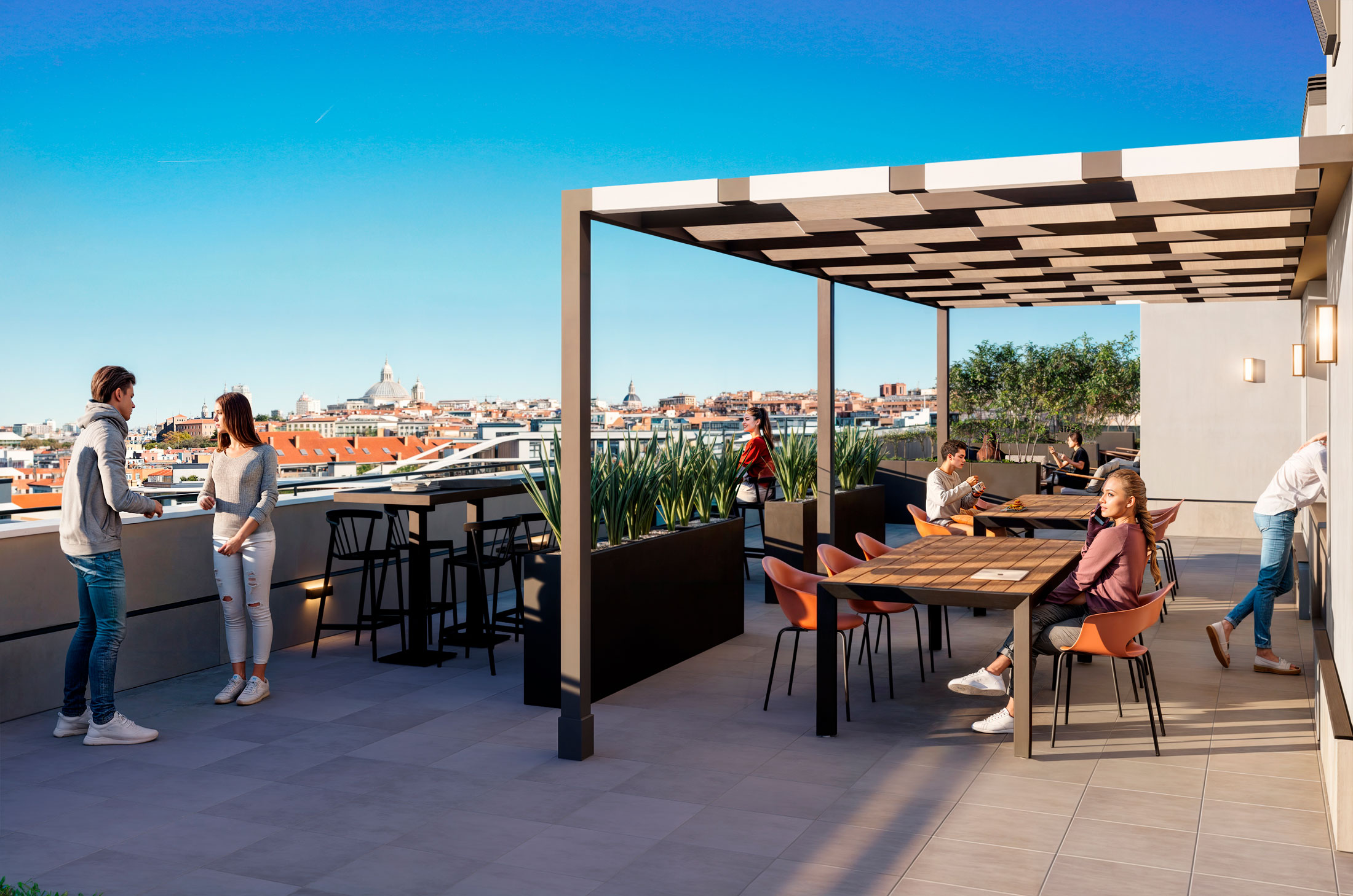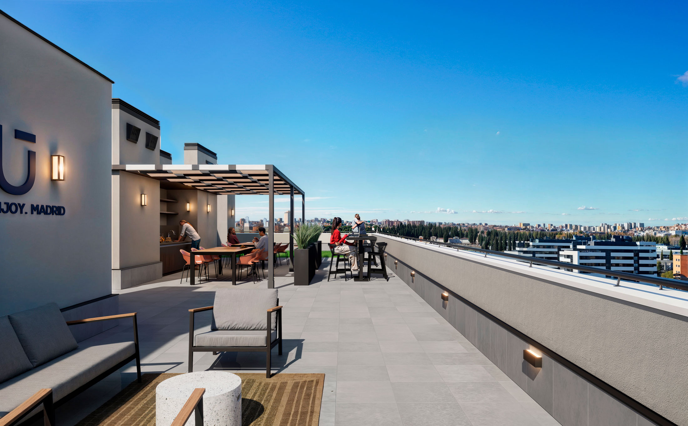 At Quest, we believe that your home should offer you more than just a place to live; it should provide you with a complete experience. That’s why we’ve equipped the building with a range of exceptional amenities that add so much extra to your daily life. From a rooftop infinity pool with panoramic views of Malaga to a fully equipped gym, coworking area, kitchen club, large lobby and various lounge areas, every detail has been thought out to exceed your expectations and offer you an unprecedented quality of life.